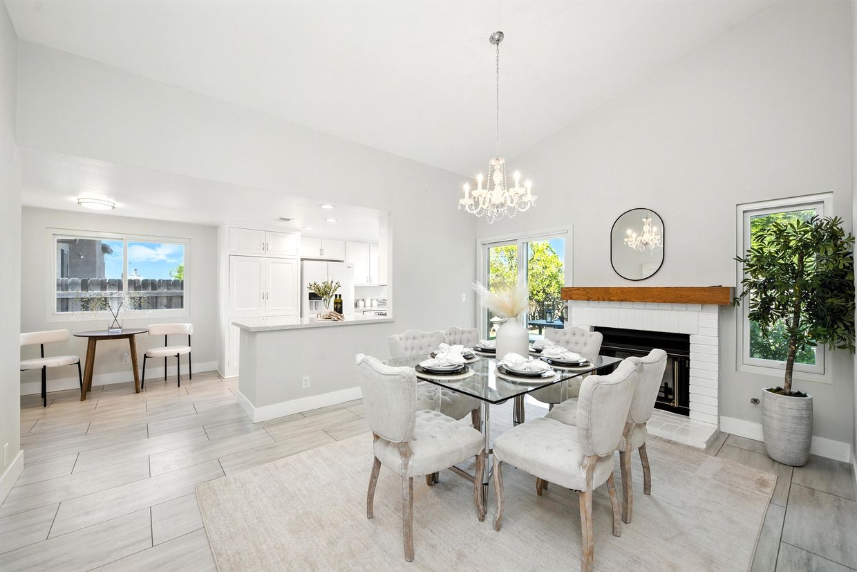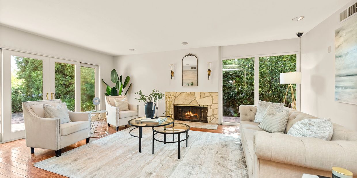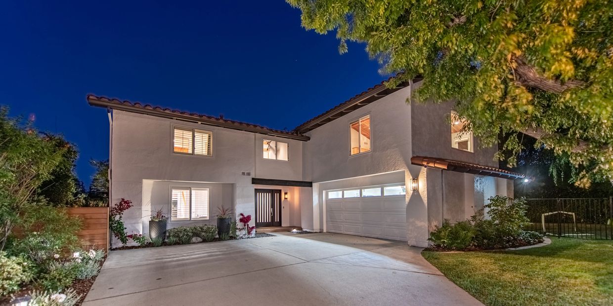 Charming Hilltop California Ranch Home on Rare Double Cul-de-Sac Welcome to this beautifully updated single-story California Ranch home, perched peacefully atop a hill at the end of a rare double cul-de-sac. This inviting retreat offers the best of California outdoor living with distant mountain views, lush landscaping, and mature fruit trees—including orange, avocado, and plum. Step through the solid wood and leaded-glass front door, adorned with elegant Baldwin brass hardware, and unwind in the warm and welcoming family room featuring vaulted ceilings and a wall-to-wall bay window overlooking the vibrant backyard. The sleek, all-white kitchen boasts quartz countertops and a cozy breakfast nook with mountain views. Kitchen opens seamlessly into a stunning dining area with soaring vaulted ceilings, a white brick gas fireplace with a warm oak mantle, and a graceful glass chandelier—creating a space that perfectly blends upscale entertaining with everyday comfort. Indoor and outdoor living connect effortlessly with direct access to the backyard from both the kitchen/dining area and the spacious primary suite. Enjoy the serene surroundings under a retractable awning or lounge on the primary bedroom's private covered patio with skylights—a tranquil sanctuary right outside your bedroom door! 88 Herringbone features upscale flooring throughout, recessed lights, fresh neutral paint, upgraded baseboards, and several new dual-pane windows with sleek shades. A newer Andersen sliding glass door, newer HVAC system, newer water heater, Hague soft water system throughout, and a reverse osmosis drinking system all add modern convenience, while a concrete tile roof, expanded primary bedroom walk-in closet and bathroom, upscale hard surface flooring, and numerous upgrades enhance long-term value. Refrigerator, washer, and dryer are staying with the home for the lucky new homeowner. Enjoy lush new sod and a sprinkler system in the backyard, paired with low-maintenance artificial turf in the front yard—offering beautiful curb appeal without the upkeep. Soft french blue hue siding, crisp white trim, and a charming white picket fence with vibrant flower bed add the finishing touches to this gem! Located in the award-winning Conejo Valley School District, with quick access to the 101 Freeway, shopping, dining, hiking trails, and stunning nearby beaches—this home offers the quintessential Southern California lifestyle. Don't miss this rare opportunity—sprawling single-story homes on quiet double cul-de-sacs like this don't come available often!