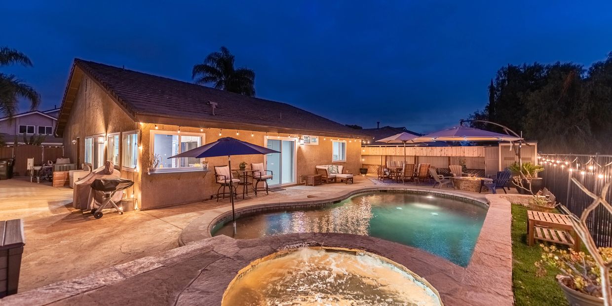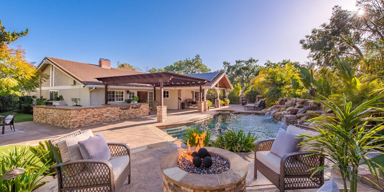 When quality matters, this property surpasses expectation. This sophisticated single story is located in the highly sought after Village Homes tract, & ideally situated at the end of a private Cul-De-Sac lot w/pocket views. Enter this gem through custom iron gates & stone walkway w/ tranquil fountain courtyard. Reap the benefits of SoCal living w/ abundant natural light, vaulted ceilings, & a refreshing connection between the interior/exterior spaces. New entertainer's custom rear yard w/majestic stone waterfall, new Pentair & PebbleTek pool/spa, Two fireglass fireplace areas, split-faced travertine stacked stone, stamped concrete, professional landscape lights, American-made artificial grass, & lush landscape. Attached Cabana boasting tongue & groove pine ceilings, Infratech electric heaters, ceiling fans, dimmable can lights. Cook like a pro w/ an inside & outside gourmet kitchen! Pergola w/Memphis Elite-Wifi compatible BBQ & convection oven, dual fridges. Perfectly sized master featuring designer walls, French doors, expansive walk-in closet w/built-ins, & a creme de la creme ensuite bathroom w/Kohler Steam shower, rain head, imported granite, views of rear yard oasis. See 3D Tour. Don't miss this opportunity to have it all!