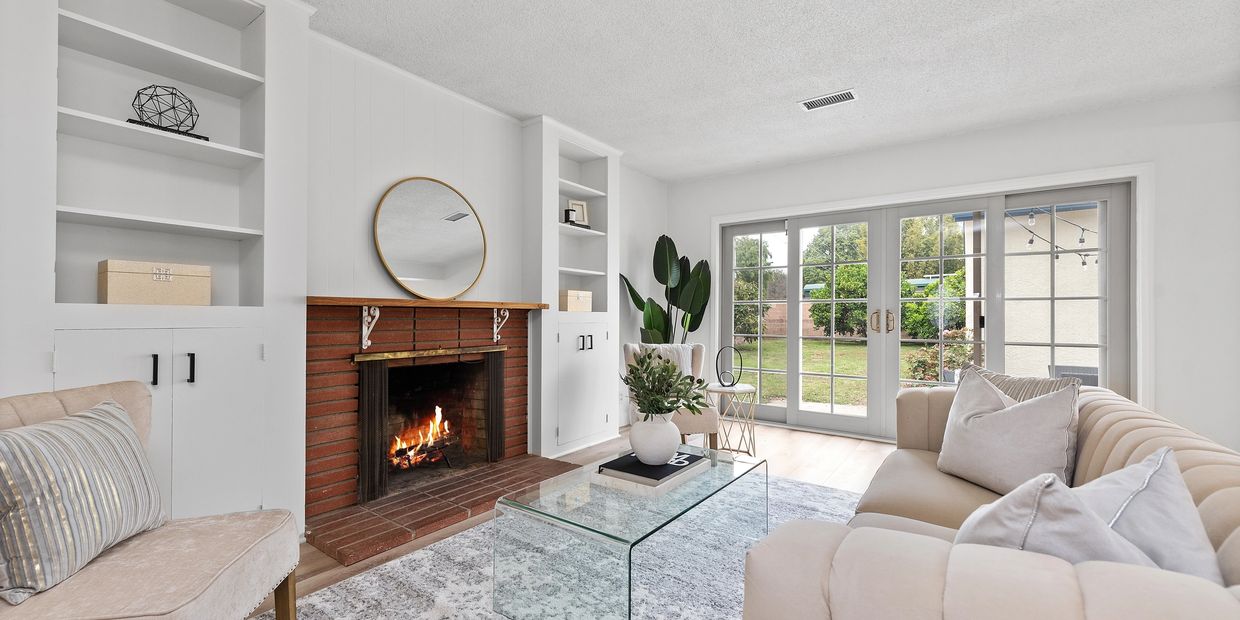 Welcome home to this Ventura Charmer on a corner lot! Quaintly built in the 50's and still exudes some of the original charm from its early days. Inviting front porch to sit and soak in the Pacific Ocean breezes. Wood and glass entry door with sidelight, welcomes you into this lovingly cared for home with a plethora pf natural light. Ideal floorplan with large living area, cozy brick fireplace, custom built-ins and large dual sliding doors with center opening, bringing the outside in. Open Kitchen with breakfast bar, ample oak cabinetry, stainless steel range and fridge, dishwasher and white tile counters. Private laundry/mud room with extra cabinets and storage! Three well-appointed bedrooms boast ideal closet space. Built-in hallway linen storage and hall bathroom with marble counter vanity sink and shower. Primary bedroom tucked in the rear of the house with its own private ensuite bathroom. Bathroom is upgraded with glass shower door, marble countered vanity sink, charming dual vertical window, track lights, expansive mirror storage cabinet, and european style floor to wall neutral tiles.
