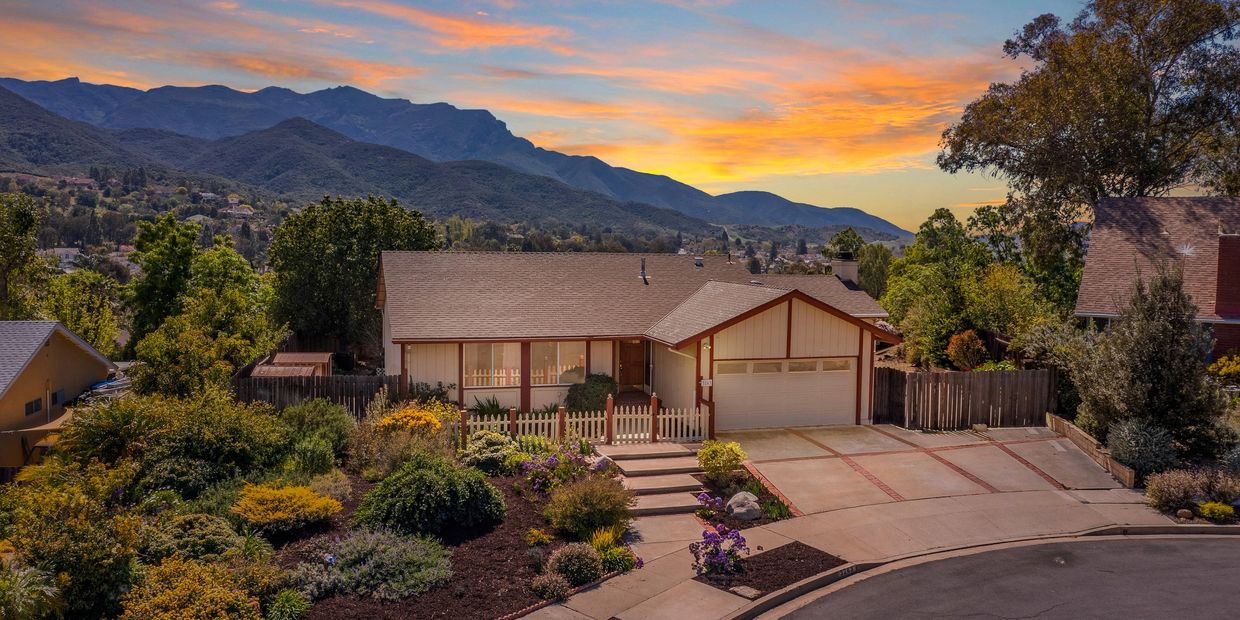 Nestled ideally on a quaint cul-de-sac, and situated high on a hill soaking in some of the best views in Newbury Park! It is no wonder that this street carries the same name as a town in Germany—which is best loved for its lush gardens, public parks, woods, and natural landscapes. This charming single story ranch style home boasts 180 degree prime views of Rancho Sierra Vista, Sandstone peak at 3,000 ft elev, lush distant meadows, rolling hills, and majestic mountain ranges from nearly every corner of the property. This hidden gem boasts a romantic wood rear porch, ideal for al fresco meals while soaking in the sweeping and breathtaking views! Lounge around in the organically added family room with a spacious and airy feel, wall to wall windows, a classic stone wood burning fireplace and hearth, and adjacent to the open concept kitchen! Enjoy cooking in the kitchen with dreamy floorplan, gorgeous views from the picturesque window to the rear yard and miles beyond. Kitchen equipped w/large island w/ prep sink, walk in pantry, generous maple cabinetry, stovetop, dual sinks, built in BBQ Grill, dishwasher. Also enjoy the charming curb appeal complete w/ picket fence, mature and drought tolerant landscape, brick ribbon hardscape, and a sumptuous side yard. Living Room with optional dining area is strategically placed with large window to soak in the mountains beyond. Three well proportioned bedrooms! M.Bdrm w/quaint master bath and a plethora of closet space. Master features sweeping views capturing the very heart of country living in Newbury Park! Master bath features walk-in shower, neutral tile + chrome fixtures. Hall bath is turnkey with travertine tile flooring and tub/shower surround. Arrive home in this flowing floorplan w/vaulted ceilings, loads of natural light, Comp shingle tile roof, recessed lights, tile, HVAC system and more. Slow down and enjoy a new pace of life at 3263 Hanover Court !